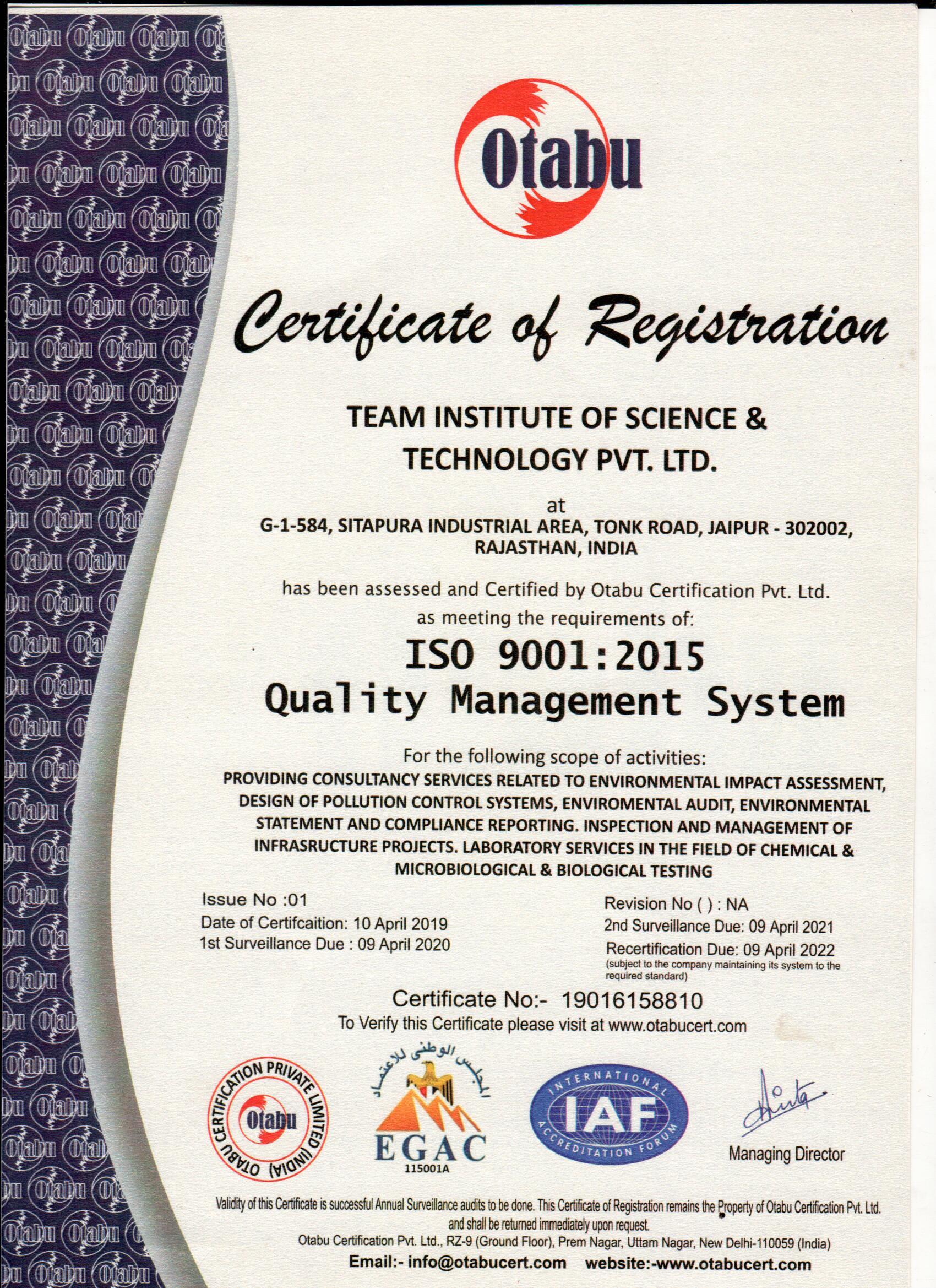 Approved by Ministry of Environment and Forest (MoEF), Government of India as Environmental Laboratory. The ministry is responsible for planning, promoting, coordinating, and overseeing the implementation of environmental and forestry programmes in the country.